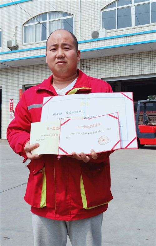 提起谢金海,该维修站的修车师傅都为他竖起大拇指。论年龄,谢金海不是这里最大的,也不是最小的,但却是2012年郑州市“五一劳动奖章”和2018年河南省“五一劳动奖章”的获得者。