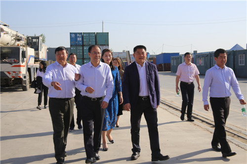 当天下午,东方金典集团董事局主席张泽保一行达到周口港区,在港区党委书记孙红伟的陪同下,张泽保一行参观了蓝城特色养老小镇、中心港码头以及港区医院、道路建设情况。在中心港码头,张泽保听取了周口航运优势和发展现状、港区总体规划、多式联运建设进度。