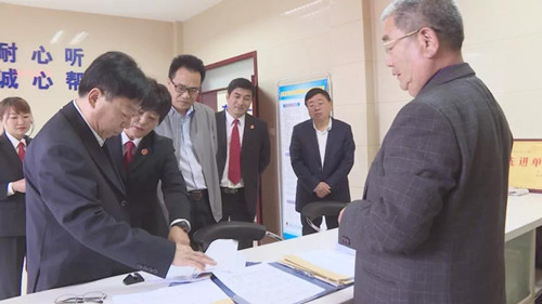 调研期间,马军杰一行还来到县人民法院审判法庭诉讼服务中心的信访接待中心、诉调对接中心、审判庭等处,与县法院的工作人员面对面交流,了解信访接待、便民服务、民事调解等工作的开展情况。