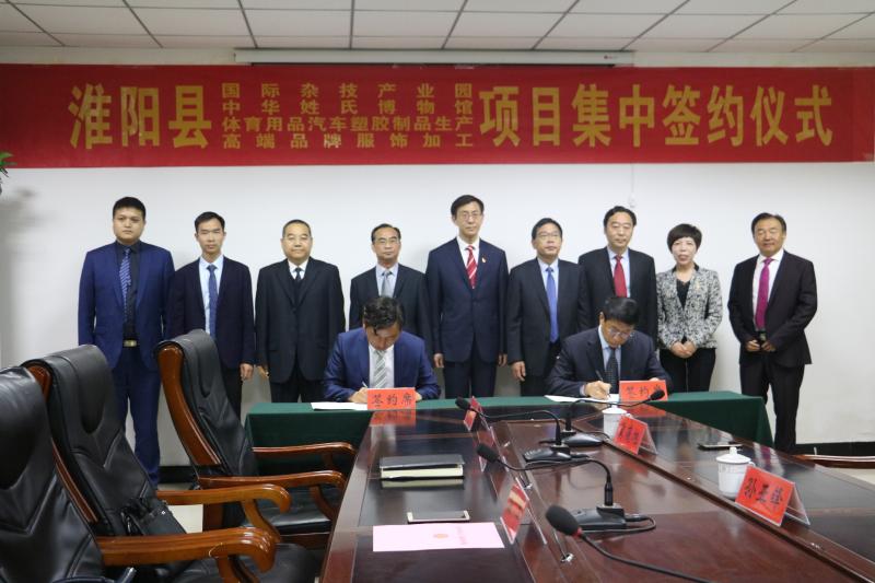 本次会议共签约四个项目,总投资约17.5亿元。分别是:河南龙都文化娱乐有限公司投资5.1亿元的国际产业园项目。翰高兄弟(北京)投资集团投资10亿元的中华姓氏博物馆项目。东莞启昊服饰有限公司投资1.2亿元的高档服饰加工项目;温州奕铭新材料股份有限公司投资1.2亿元的体育及汽车用品项目。
