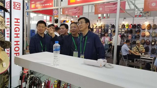 在广交会服帽展区,马明超一行走访淮阳县出口大户河南瑞能服帽有限公司产品展销情况,详细了解服帽产品国际市场销售行情、发展变化和下一步打算。马明超鼓励企业要准确把握产业发展方向,博取众长,着力研发新产品,抢占市场制商点,引进合作项目,努力扩大出口,在去年出口8796万元的基础上,今年争取出口突破1个亿。瑞能服帽总经理唐书景表示,今后要克难攻坚,创新发展,用好广交会平台,扩大国际市场份额,再创出口佳绩。