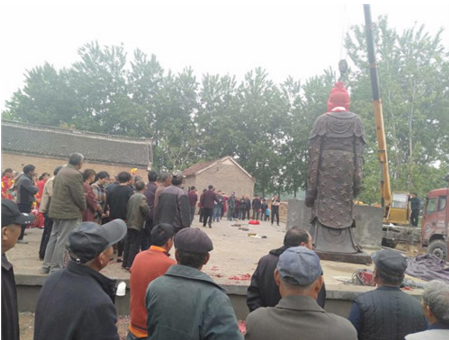 当日一大早,人们纷纷来到盘古女娲塑像现场,在包村干部朱联玉、木岗寺行政村支部书记赵克龙及村委一班人的组织下,人们敲起了响亮的盘鼓,跳起了欢快的舞蹈,迎接盘古女娲神像的到来。