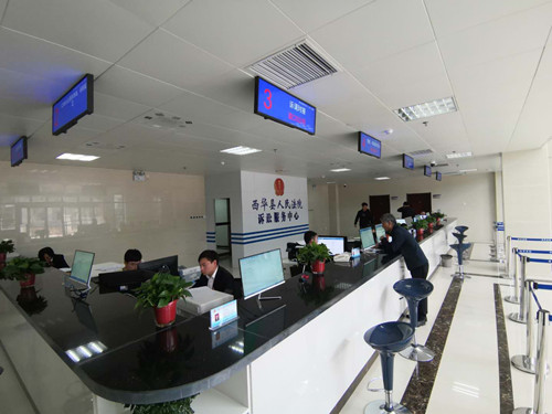 在西华县人民法院诉讼服务中心,当事人及社会公众可通过诉讼服务智能系统的自助终端进行网上立案、案件查询、诉讼引导、阅卷申请、联系法官和查看法庭位置、开庭公告等信息,并可打印文书样式。