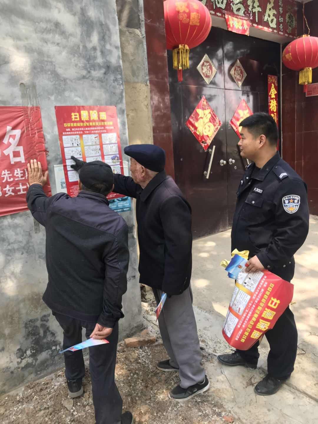活动中,民警深入到辖区22个行政村共张贴扫黑除恶宣传海报500张,发放宣传工作册100本。