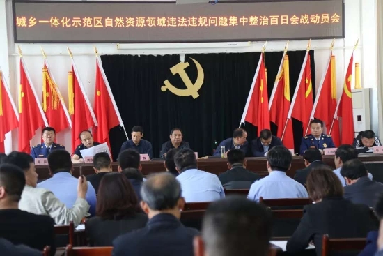 会上,区国土分局局长周立新宣读了《周口市城乡一体化示范区自然资源领域违法违规问题集中整治百日会战工作方案》。
