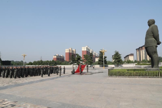 “我是中国民兵,我宣誓:服从中国共产党领导,积极参加国家建设,忠实履行国防义务,遵纪守法,服从命令,忠于职守,努力学习……”当日上午,在吉鸿昌将军塑像前,太康县全体基干民兵集体重温了民兵誓词。