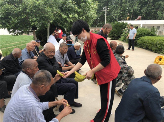 当天上午,周口助梦公益团20余名志愿者来到西华县大王庄乡中心敬老院,为37名老人带来了自发捐款购买的鞋子、毛巾、袜子、香皂、脸盆、香蕉、西瓜等价值近2000元的爱心物资。