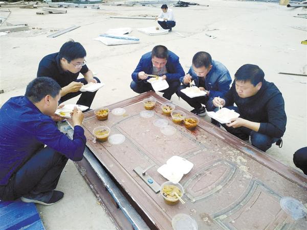 5月13日14时许,工作人员趁工作间隙吃盒饭。当天,城北办事处集中取缔“散乱污”企业10家,拆除建筑面积近1万平方米。