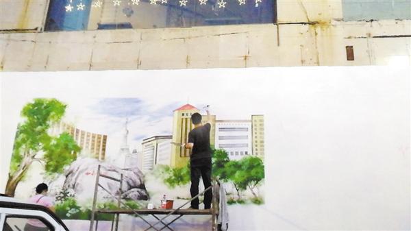 5月11日6时许,区委宣传部、区文联组织书画志愿者加紧绘制文化墙,助力“创卫”。本版图片由王凯摄