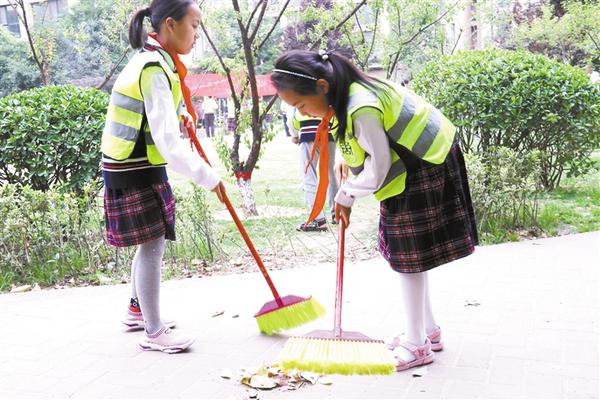 5月14日下午,市城乡一体化示范区文昌办事处建业社区开展“大手拉小手 共创卫生城”活动,邀请60多名周口市文昌小学学生走进社区,体验“创卫”工作。 记者 高洪驰 摄