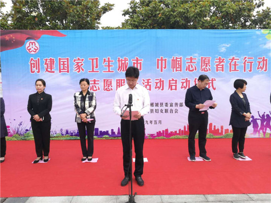 郸城县委副书记、政法委书记崔卫国出席启动仪式并讲话。县委常委、县委宣传部长吴青锋主持启动仪式,县人大副主任张爱联,县政府副县长肖炜,县政协副主席李素梅,县妇联主席朱素华,县卫建委主任付登霄出席。朱素华宣读倡议书。