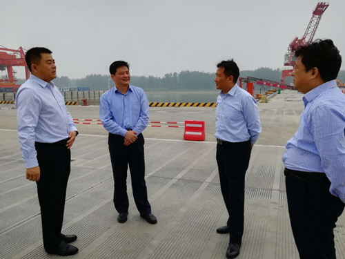 5月15日,国网河南省电力公司副总经理安军到周口港区调研中心港码头项目建设,港区党委书记孙红伟,党委委员张东立陪同调研。