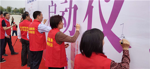 携手共建卫生城,齐心同育文明花。5月19日上午,周口市城乡一体化示范区(以下简称示范区)创建国家卫生城市志愿者服务活动正式启动。市创卫办副主任、市卫健委主任金玉贞,共青团周口市委书记王春华,示范区党工委书记闫立超、管委会主任张建党等全体班子成员出席仪式。全区3600名青年志愿者参加活动。