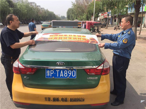 由区五城联创指挥部牵头,组织区城管局、区交通运输局等职能部门,利用城管执法车辆、环卫保洁车辆、交通执法车等,统一张贴宣传标语进行宣传。日出动各类宣传车辆109辆。区五城联创指挥部办公室会同区交通运输局在中心城区出租车上统一张贴创卫宣传标语和禁烟标志,累计张贴出租车600余辆。多种载体宣传。利用车体标语、车载音响、大喇叭、出租车顶灯等载体,大密度宣传创卫标语口号,播放统一灌制的创卫宣传音频。