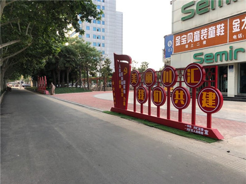 在辖区内机西高速口、北高速口处积极设立大型公益广告牌。同时,沿机西高速连接线至太清路,商周高速北口周口大道向南,并延伸至太清路,利用沿线绿皮围挡统一制作立体雕刻字及图案,宣传创卫意义及标语口号。已累计制作立体字1000多个。在主要交通路口设置宣传广告牌。区五城联创指挥部统一制作了300块宣传版面,内容包括创卫意义、健康教育及病媒生物防制知识等,由各办事处、城管部门配合,在辖区主要交通路口适当处放置。各办事处、各有关职能部门自行制作各类宣传栏、宣传版面,放置于辖区主要交通路口。累计设置宣传广告牌215块。