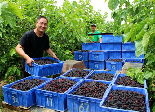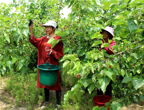 除此之外,桑果的采摘全靠人工,是劳动密集型产业,需要大量当地的劳动力,每到采摘季节,公司都会招用周边200余名村民到种植基地务工,仅此一项,为每名务工人员人均增收3000余元。“俺在益品桑椹种植基地采摘桑椹,每天都有100多元的收入。”今年63岁的黄桥乡孙堤村留守妇女赵美容高兴的说。