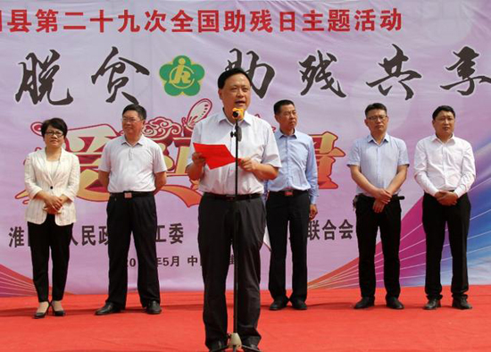 5月19日,淮阳县2019年全国助残日在特殊教育学校举行,县委副书记、政法委书记胡东河,县人大常委会副主任霍伟,副县长王汝凌,县政协副主席刘卫洁和县委办、县政府办、县民政局、县残联、县教体局、县卫健委等有关负责同志出席了仪式。