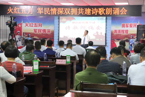 他说,“火红五月,军民情深”双拥共建诗歌朗诵会,是加强军政团结、军民团结的一次重要活动,也将进一步加快推进军民融合深度发展,围绕新形势下推进双拥工作的新要求,以基层双拥工作为重点,拓宽新领域,丰富新内容,培育新亮点,全面提高双拥工作水平。