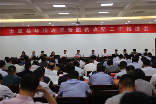 太康县日前在脱贫攻坚指挥部视频会议室召开环保攻坚暨脱贫攻坚工作推进会。王国玺、李锡勇等县四个班子领导及县副处级以上干部、各乡镇党委书记、县直单位主要负责人、县委各部委办常务副职参加会议。