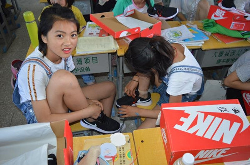 “这鞋子穿在脚上轻便舒适,还是耐克名牌,我长这么大还没有穿过这么好的运动鞋呢,有了它,我今后上体育课就更加方便了。非常感谢黄叔叔的爱心捐助。”5月27日下午,太康县马头镇薛庙小学六年级学生王雨蒙穿上爱心人士黄宗昆捐赠的运动鞋后激动地说。