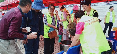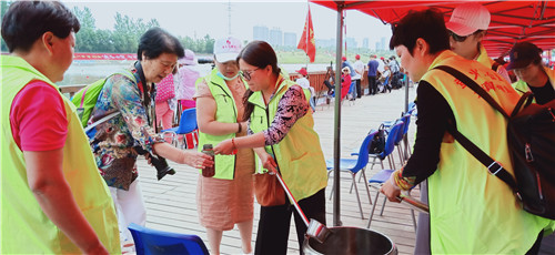 5月29日上午,周口市第六届中华龙舟大赛在沙颍河鸣锣开赛。在活动现场,周口萤火虫公益的志愿者把提前熬制好的绿豆茶带了过来,免费供观众和运动员饮用,出现了一幕幕感人的画面。