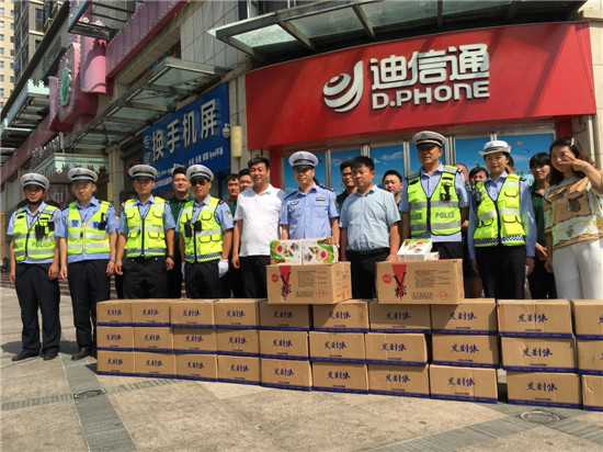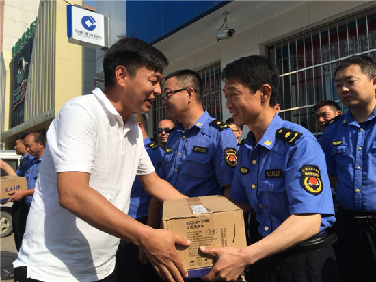 周口是我家,创卫靠大家。6月2日上午,王留长餐饮公司联合河南威远通风设备有限公司等爱心企业,将400件矿泉水、400箱粽子等爱心物品送到城管队员、公安巡特警、交警一线执勤人员手中,感谢他们在周口“创卫”工作中付出的辛勤努力。