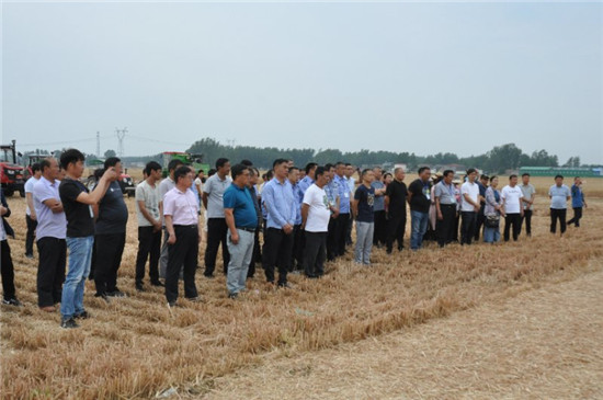 参会人员现场观摩了小麦机收、秸秆还田、机械打捆、土地耕整、玉米播种等环节作业演示,聆听技术讲解,对小麦全程机械化作业方式进一步有了直观了解。