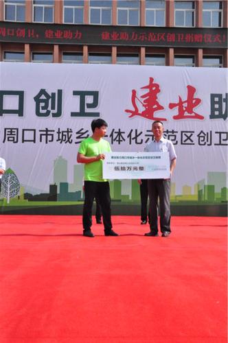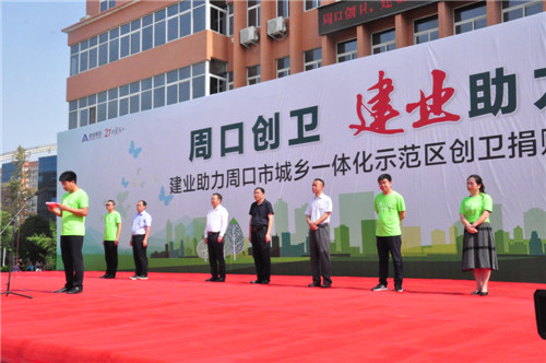 6月3日上午,“建业助力市城乡一体化示范区创卫”捐赠仪式在文昌中学举行。建业集团周口区域总公司向市城乡一体化示范区捐资50万元,以实际行动助力我市创卫工作。