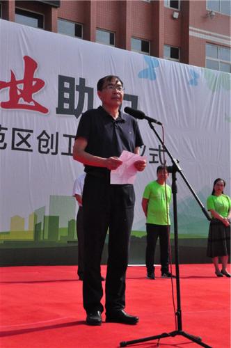 市城乡一体化示范区管委会副主任丁有亮发表致辞,他对周口建业回馈社会、支持创卫的壮举表示钦佩。他说,创建国家卫生城市是市委、市政府的重大决策部署,对于改善城市环境,提高城市形象和市民卫生健康水平都有着重大意义。时值全市上下攻坚克难、冲刺创卫的关键时刻,周口建业伸出友谊之手,捐资50万元大力支持创卫工作,对市城乡一体化示范区来说是及时雨,增强了全区上下打赢创卫攻坚战的决心和信心。周口建业这种发展不忘社会,回馈社会,支持创卫的壮举和强烈的社会责任感值得全社会赞扬和弘扬。他呼吁各单位、各企业和全体市民向周口建业学习,积极投身到创卫工作中去,共同努力争取创卫的最后胜利。