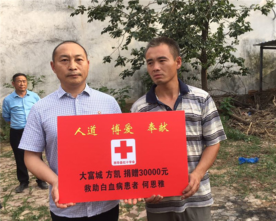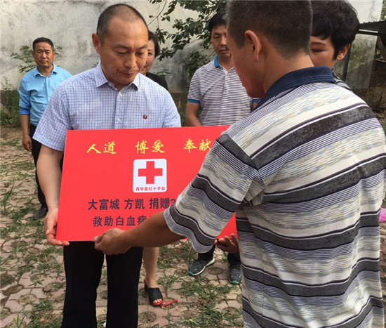 西华县副县长张翠霞、西华县红十字会秘书长赵红霞等人闻讯赶来,参加简短的捐款仪式,并代表县政府和红十字会对方凯的善举表示感谢。