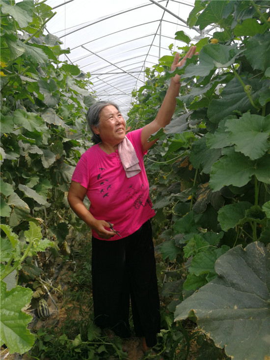刘庄行政村脱贫户邓先英,今年已经62岁了,但他每天第一个早早来到大棚,剪枝、拔草,从不落后别人。“虽然脱贫了,但我们不能等政府来救济,要学会自力更生,好日子还要靠自己干出来!”