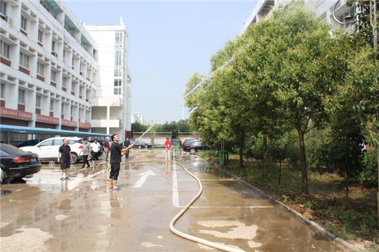 虽然天气炎热,大家汗流浃背,却热情高涨,积极性很高,大家纷纷拿起扫帚、抹布,提上水桶,充分发扬不怕脏、不怕累的精神,对院内道路、车棚、宣传栏、绿化带等处进行冲洗、清扫,同时对各楼层门窗玻璃、消防栓、厕所等进行集中清理……经过两个多小时的辛勤劳动,各办公室窗明几净,厕所卫生干净整洁,车棚车辆摆放整齐,院内环境焕然一新。