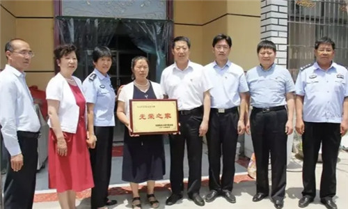 6月25日,河南省见义勇为基金会副理事长刘玉虎、秘书长郑献春一行来到郸城县见义勇为模范称号的王军生家中,刘玉虎亲自将“光荣之家”的牌匾送到王军生的爱人韩香手中。周口市公安局党委委员、政治部主任郭冰,政治部副主任李亚鹏,基金会周口分会秘书长王鑫,郸城县委副书记、政法委书记崔卫国,郸城县公安局政委赵红建,郸城县公安局党委委员、政工室主任李越,郸城县洺南办事处书记张杰等参加了授牌。