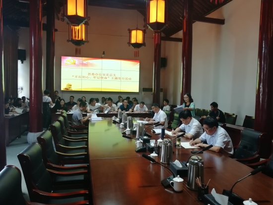 6月25日下午,鹿邑县委办公室党总支开展“不忘初心、牢记使命”主题党日活动。县委书记梁建松,县委常委、办公室主任侯自峰以普通党员身份参加活动,并带头缴纳了党费。县委办公室常务副主任、党总支书记胥茂森主持主题党日活动。县委办公室全体党员参加活动。
