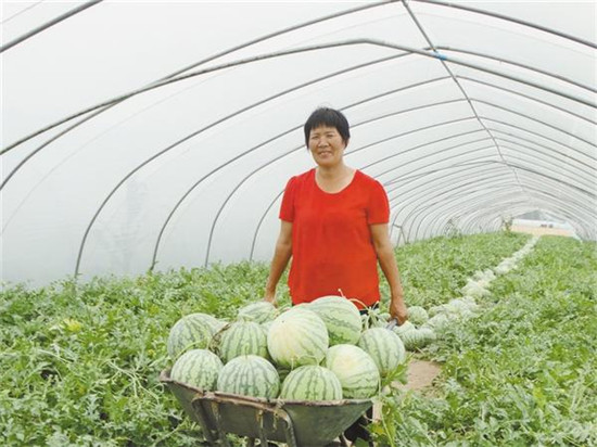 日前,沈丘县周营镇一大棚生态西瓜种植基地内,村民正在采摘搬运西瓜。近年来,在推进产业脱贫过程中,该镇积极调整农业产业结构,规模有序流转土地,科学种植生态瓜果。目前,大棚生态西瓜种植已成为带动农民增收致富的“甜蜜产业”。