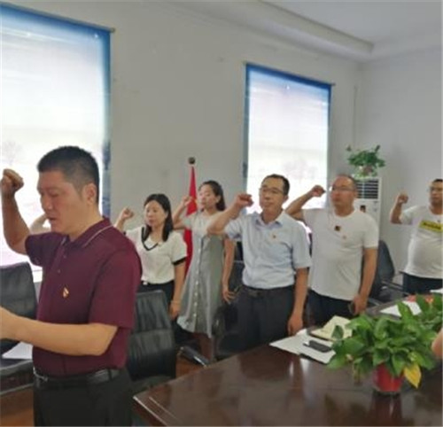 活动还对闻荣玲、王伟两名预备党员转为正式党员进行了审议、讨论、表决;全体党员面对党旗,重温了入党誓词;全体党员还进行了庆祝建党98周年知识测试。