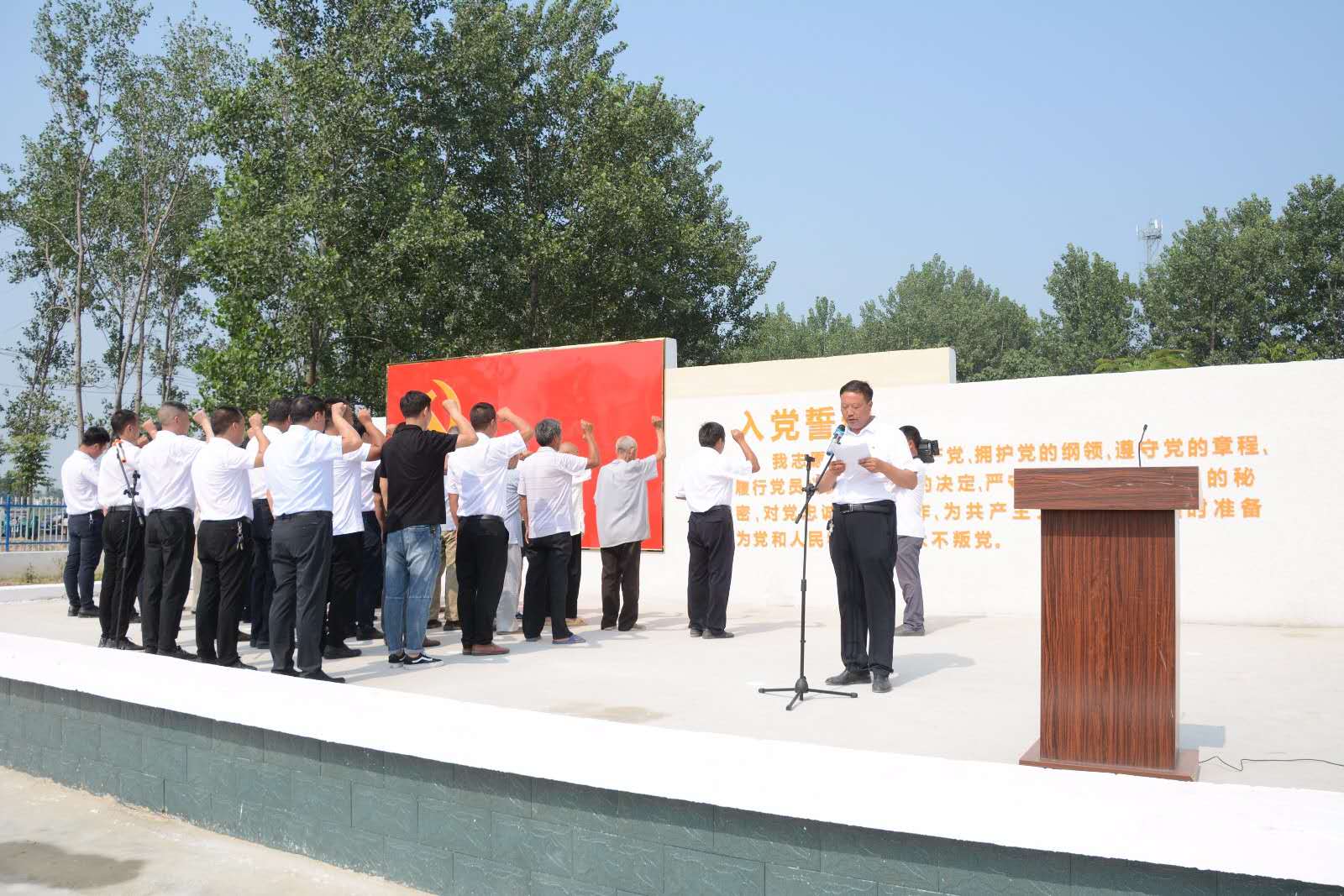 “我志愿加入中国共产党,拥护党的纲领,遵守党的章程……”升国旗仪式结束后,由纪庄支部书记李国喜领誓,全体党员面对鲜红党旗,胸前佩戴党徽,排着整齐的队列,高高举起右手,再次向党作出了庄严地承诺,重温入党誓言,声声入耳,句句入心。