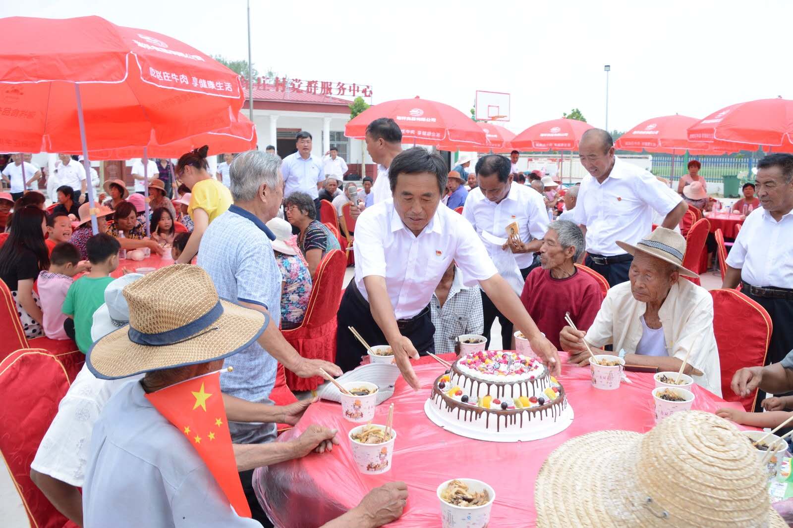 文艺演出结束后,参会党员群众欢聚一堂,共进午餐。纪庄村党支部书记携全体党员干部共同为当月过生日的老党员史海汕同志送上生日蛋糕,并一起聆听老党员的心路历程,史海汕同志感慨地表述:“我在纪庄村生活了78年,这是我过的最好的一次生日,通过汇演我看到了镇全体党员、干部群众们的爱国、爱党、爱岗情怀,虽然我老了,可我的初心依旧,我愿为中国共产党奋斗终身,为我们红花集镇乡村振兴添砖加瓦。”