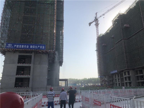 当日下午,记者在金海嘉苑3标段施工现场看到,高耸入云的塔吊有条不紊地作业,施工车辆不时进出,施工人员挥汗如雨紧张施工,一派忙碌的施工景象。工地环保措施也相当到位,楼层喷淋激起水雾彩虹,围挡及通道喷淋雾状洒水,车辆进出必须清洗。在项目入口施工显示牌上,噪音、扬尘等指标均严格控制在标准区间内。