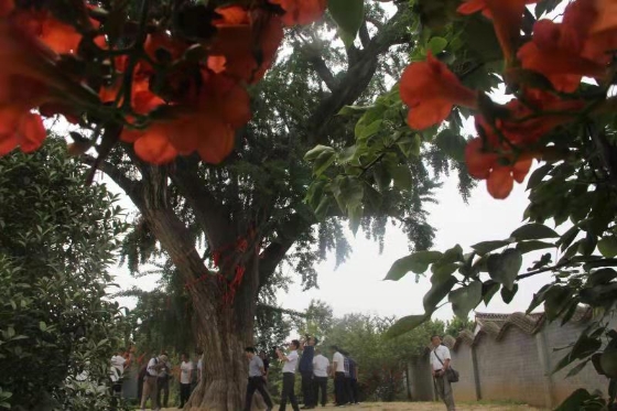在许村千年白果树下,光武帝刘秀目光坚毅、深情凝重,仿佛还在回味当年金戈铁马的峥嵘岁月。采风团成员在树下的马蹄印前伫立观赏,聆听沉思。
