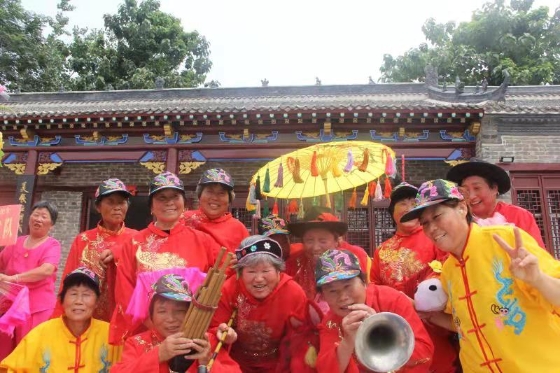 欢快的音乐响起,一群群老人们载歌载舞,翩翩而来。她们有的划着旱船,有的挥着鞭子,有的叼着烟斗,有的抬着轿子,一招一式,都是那么专业。