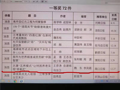 据介绍,本届河南新闻奖获奖作品具有“把握时代脉搏 讴歌时代精神”“反映重大主题 积极服务大局”“讲述中国故事 彰显主流价值”等特点,主题深刻、事实准确、文风生动、表现新颖,充分反映我省新闻战线积极宣传报道党的十八大以来我省发展的历史成就、历史变革,报道我省各行各业改革开放的丰硕成果和感人事迹,特别是聚焦打赢精准扶贫攻坚战,形成宣传的强大声势。作品坚持正确的舆论导向、唱响主旋律、大力宣传社会主义核心价值观,为新时代中原更加出彩提供强有力的舆论支撑和良好的舆论氛围。《太康“五养模式”让特困养老实现“菜单式”》具有“重大题材”“重大影响”“重大意义”等特点,经过专家层层评审,最终在众多参评作品中脱颖而出,一举夺得了河南新闻奖一等奖。