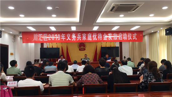 为营造“一人当兵 全家光荣”的良好氛围,激发有志青年参军入伍的积极性和热情,提高他们的自豪感、荣誉感,共同巩固和发展军政军民"同呼吸、共命运、心连心"的良好局面。7月12日,川汇区在全市范围内率先举行2019年义务兵家庭优待金发放启动仪式。
