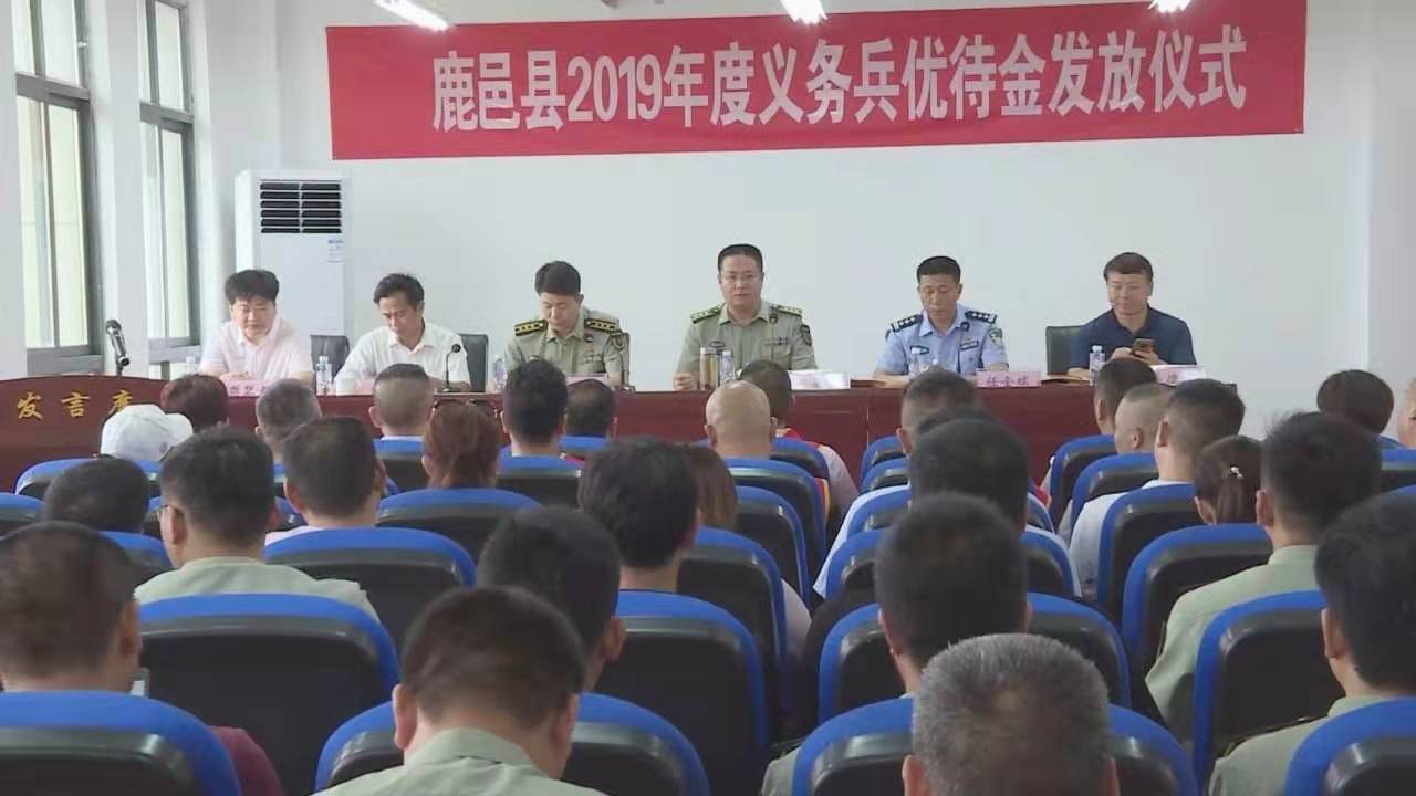 7月24日,鹿邑县2019年义务兵优待金发放仪式举行。县委常委、武装部政委杜宝森,县人武部部长陈巍,县政府副县长、公安局局长任金瑞出席发放仪式,并为12名义务兵家属代表发放了优待金。