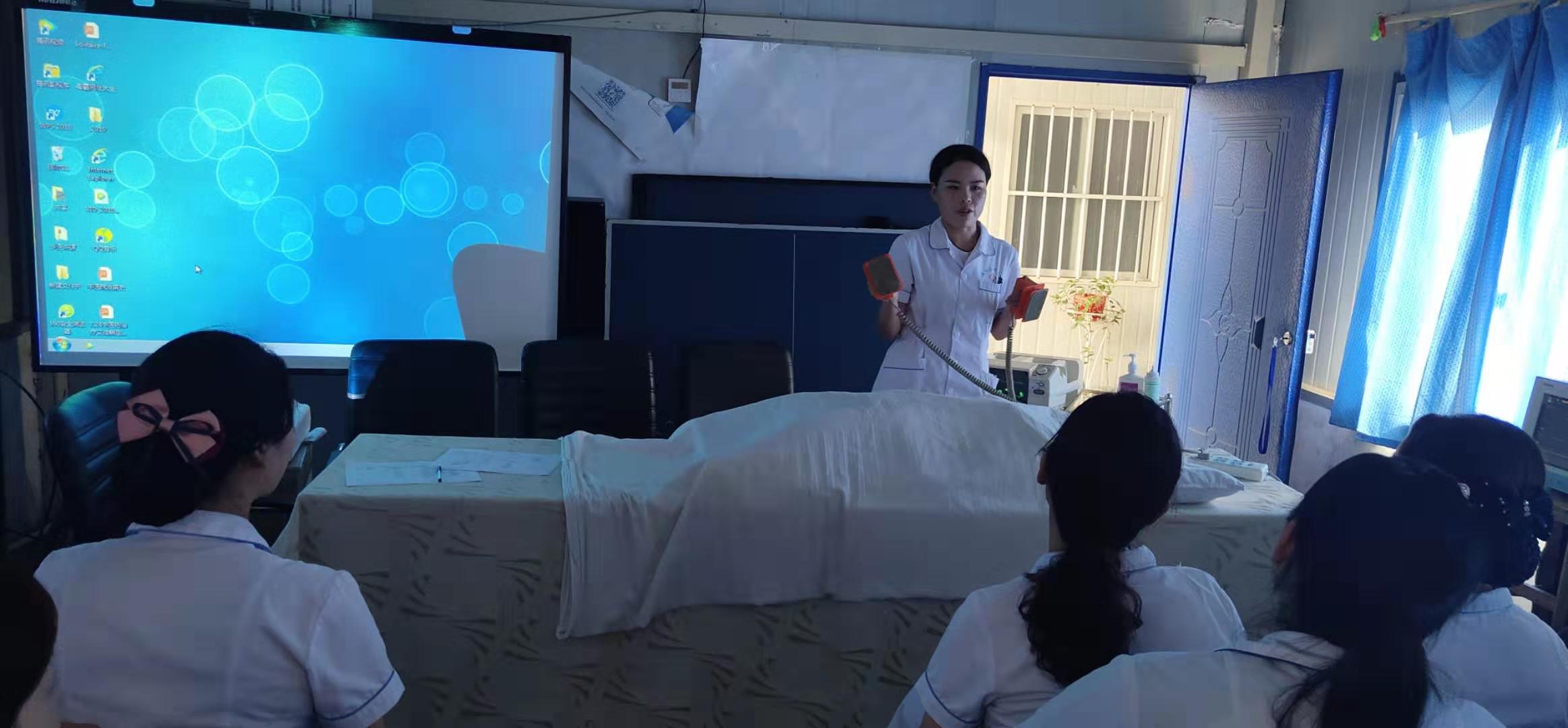 培训由县中医院ICU护士崔阳阳以及ICU护士赵勤进行理论授课及实操演练。