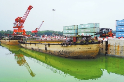 7月20日,周口中心港一派繁忙景象。该港口是我省规模最大、靠泊能力最强的内河港口。随着公、铁、水、空“四位一体”立体综合交通格局的逐步形成,周口中心港将成为豫货出海口、连接长三角经济圈的“桥头堡”,也将成为中原地区深度融入“一带一路”建设、通江达海的重要节点。河南日报记者 陈更生 王铮 摄