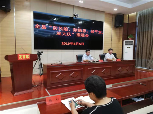 8月5日上午,在收听收看完全市安全生产视频会议后,鹿邑县立即召开"防风险、除隐患、保平安、迎大庆"推进会,安排部署全县安全生产工作。县政府党组成员、县委各部委副职、县安委会成员部门负责人参加会议。