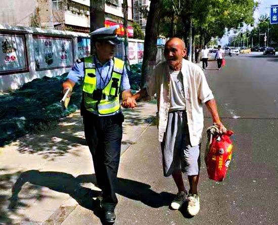 本报讯 近日,市公安局交通管理支队二大队执勤民警搀扶老人过马路的暖心一幕在微信朋友圈大量转发,获广大网友纷纷点赞。