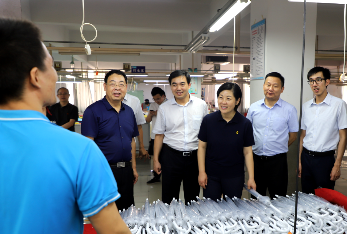 罗文阁一行先后深入到上虞伞业科创服务中心、浙江天玮雨具有限公司、浙江友谊菲诺伞业股份有限公司等地参观考察,详细了解崧厦镇伞业的发展概况、运营模式及远景规划。据了解,目前,郸城县从事伞业生产人员达10万人以上,尤其以江浙地区制伞企业居多,郸城籍伞业技术人才占1/5,在外开办伞厂的大小企业有200多家,回乡开办伞厂约50家,外籍伞企加工点10家。现有伞企涉及到成品伞、伞骨、伞架等大部分生产环节,虞城县电镀产业园、漯河市电泳厂距郸城县仅1个半小时车程,产业链条基本形成,郸城县已经具备建设大型伞业基地的条件。