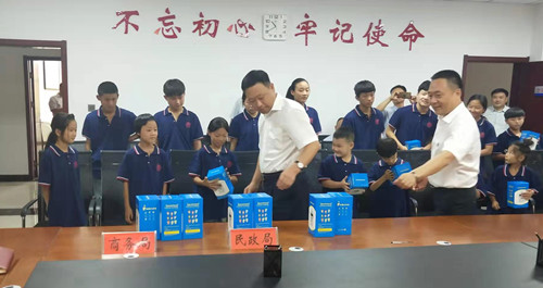 当天上午,许四军、张国庆一行人来到太康县扶贫办,为太康县贫困家庭留守儿童发放智能学习机500套,帮助他们提高学习兴趣、改善学习环境、拓宽知识面,接受优质教育资源,进而达到提高学习成绩的目的。许四军希望受助的学生能严格要求自己,刻苦学习,以优异的成绩回报国家、回报父母、回报师长、回报帮助过的人;要求县慈善组织要继续发扬“扶贫济困”的慈善宗旨,坚持更高标准、更严要求,增强做好新时代慈善工作的责任感和使命感,服务大局,引导社会资金向贫困家庭倾斜,助力脱贫攻坚工作,推动慈善扶贫事业再上新台阶。